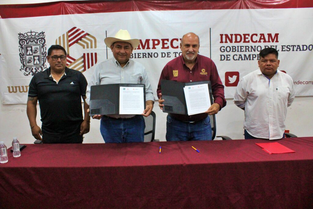 Con el propósito de fortalecer el desarrollo deportivo en el Municipio de Candelaria, buscando que la población en general se beneficie con la práctica de algún deporte, en la sala de juntas del CEDAR, se llevó a cabo la firma de convenio de colaboración entre el Instituto del Deporte de Campeche y el H. Ayuntamiento de Candelaria, mismo que firmaron el alcalde Jaime Muñoz Morfín y el director general del INDECAM, LCFyD Francisco Menéndez Botanez.