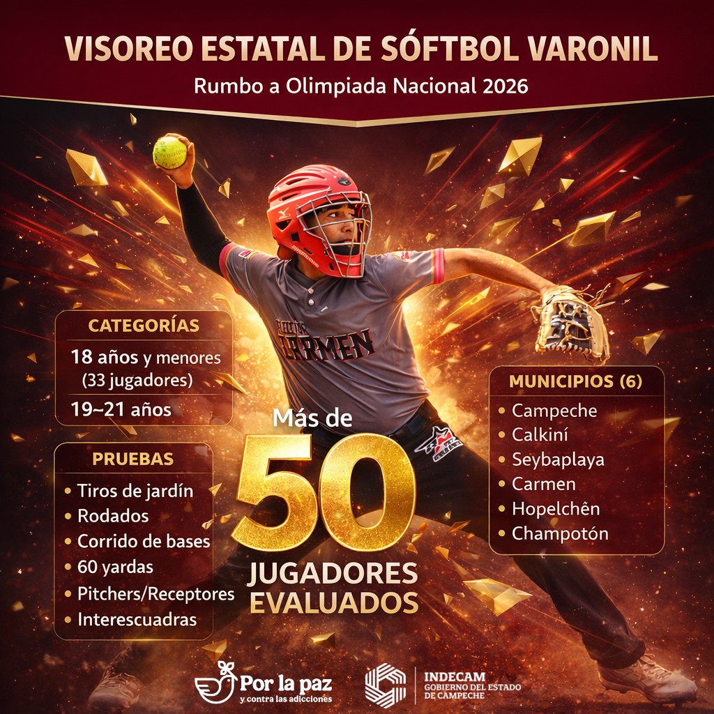 Con una destacada participación de más de 90 atletas entre ambas ramas, el Instituto del Deporte de Campeche (INDECAM), en coordinación con la Asociación Campechana de Sóftbol, realizó los visoreos estatales de sóftbol varonil y femenil, rumbo a la Etapa Regional que se disputará en marzo.